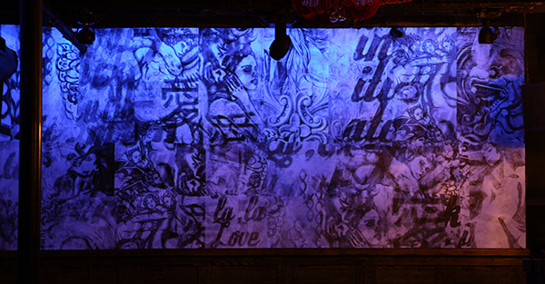 Juan Manuel Rozas, Wallpaper Collage on Space Nightclub Miami walls. Photos by Juan Montburn
